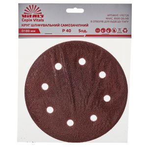 Опис круга шліфувального самозачіпного Vitals 180 мм, 8 отв. з. – 40, 5 од.