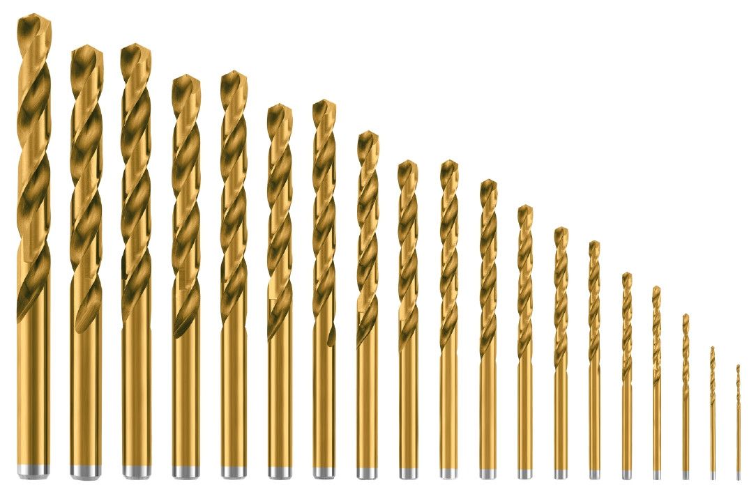Набір складається з 19 предметів, які охоплюють найбільш затребуваний діапазон діаметрів від 1.0 мм до 10.0 мм із кроком у 0.5 мм. Це дозволяє майстру бути повністю укомплектованим для вирішення широкого спектру технічних завдань: від тонкої механіки до монтажу важких металоконструкцій. Всі свердла виготовлені згідно з міжнародним стандартом DIN 338, що гарантує їхню сумісність із будь-якими типами свердлильних патронів — від ручних дрилів до стаціонарних верстатів. Наявність проміжного розмірного ряду є критично важливою для підготовки отворів під нарізання різьби, де точність діаметра визначає міцність майбутнього з'єднання. Кожне свердло має чітке маркування розміру на хвостовику, що полегшує пошук потрібного інструменту в процесі інтенсивної роботи.