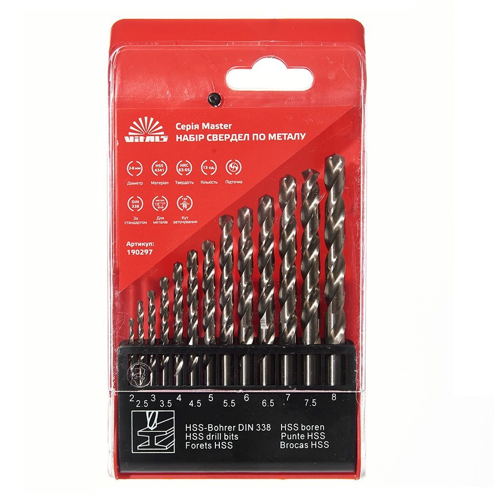 Опис набору свердл по металу HSS 4341 13 од. 2-8 мм Vitals Master