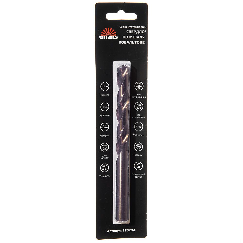 Опис свердла по металу HSS-Co/M35 12.0 (1 од.) Vitals Professional