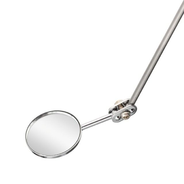 Круглое зеркало, диаметром 50 мм, обеспечивает отличный обзор, а за счет шарового шарнира может размещаться под нужным углом, что очень удобно при осмотре днища и деталей под капотом машины. Телескопическая конструкция раскладывается на необходимую вам длину от 170 мм до 485 мм.
