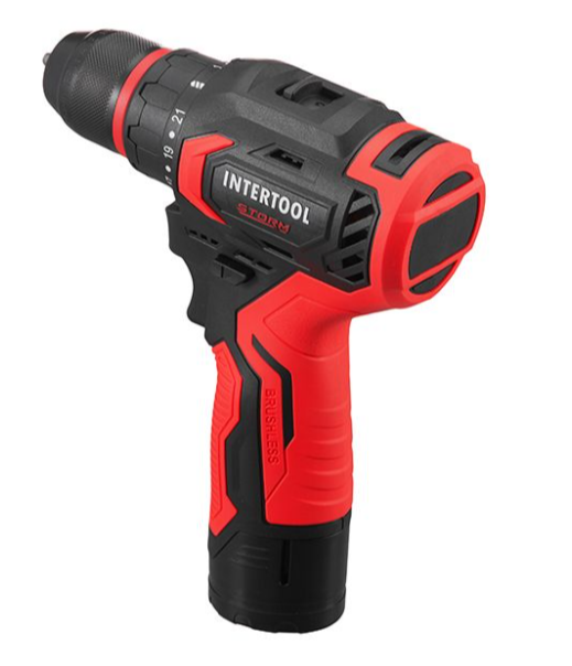 Дриль-шуруповерт акумуляторний, безщітковий двигун, 12 В, 50 Nm, 0-500/0-1900 об/хв, патрон 0,8-10 мм, 2x2,0 Ач INTERTOOL WT-0322