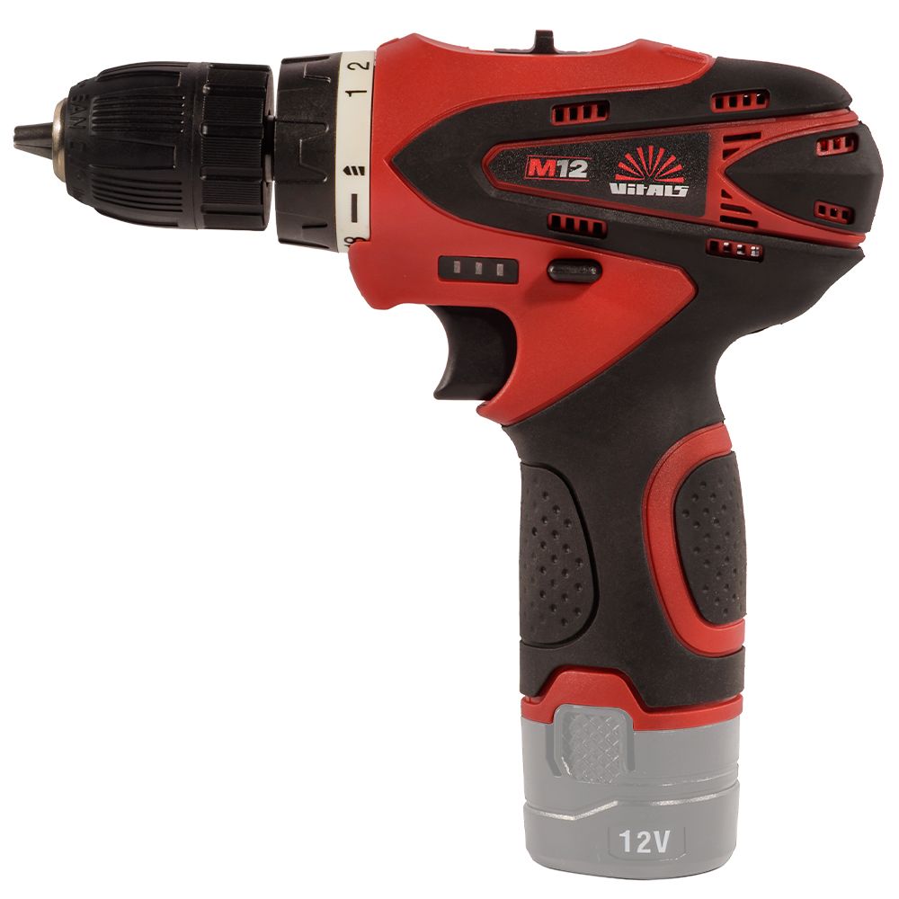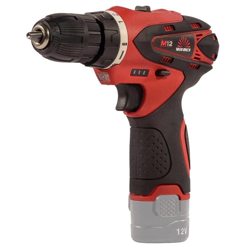 Дриль-шурупокрут акумуляторний ТМ «VITALS» AU 1221c — надійний і безпечний інструмент для закручування та відкручування кріплень, а також свердління отворів діаметром 0,8–10 мм. Має два режими швидкості, реверс, LED-підсвічування робочої зони та швидкозатискний патрон для зручності роботи. Ергономічний корпус із ударостійкого пластику забезпечує захист і комфорт. Працює від Li-ion акумулятора лінійки «М12» (не входить до комплекту).