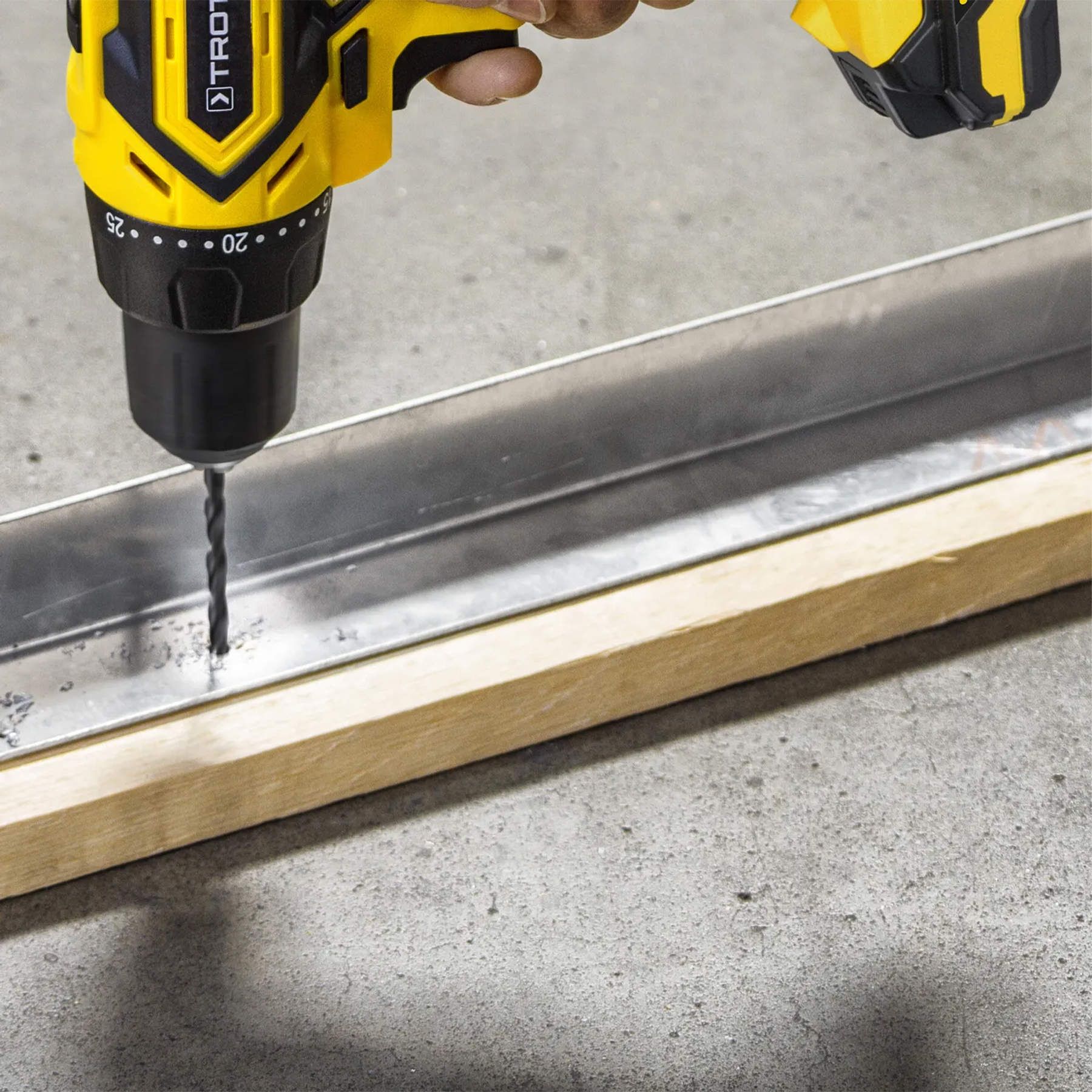 Надійна 2-швидкісна коробка передач Trotec PSCS 11-20V забезпечує оптимальну безступінчасту передачу потужності двигуна з максимальним крутним моментом 35 Нм. Перемикач обертання вправо-вліво має проміжне положення, що забезпечує блокування, а функція швидкої зупинки негайно гальмує двигун, щойно кнопка відпущена, запобігаючи зношенню рухомих частин дриля та прискорюючи робочий процес.