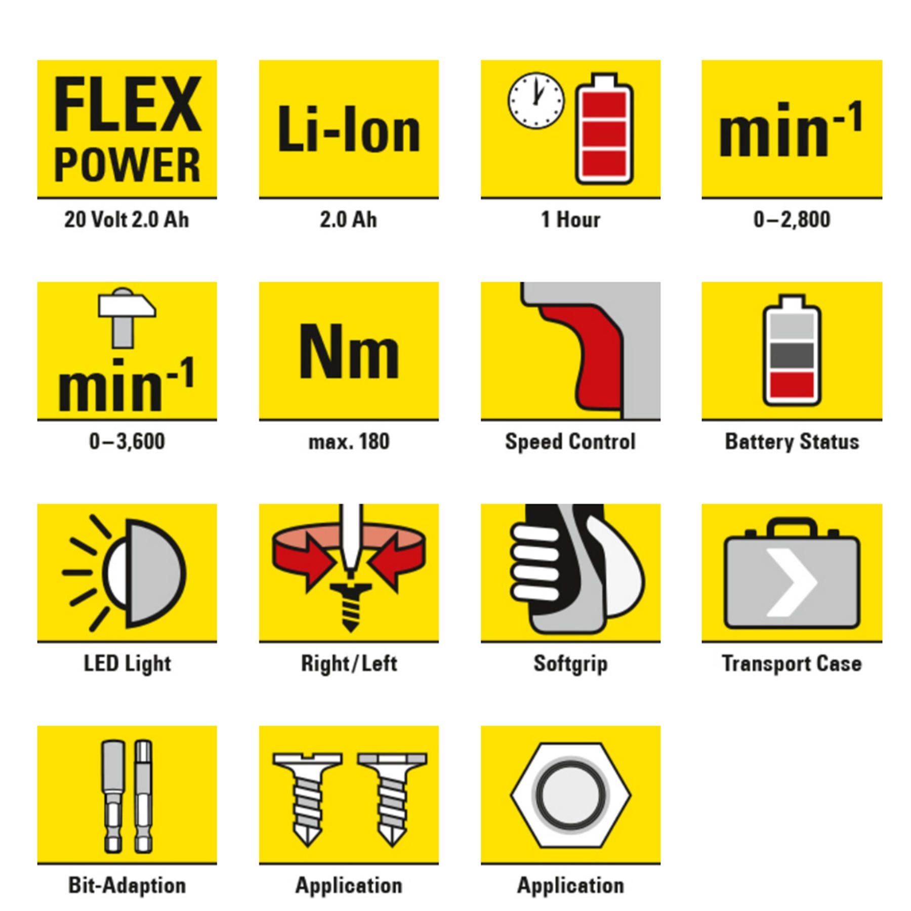 - Акумуляторна батарея FlexPower: Li-Ion 20В, 2А·год, 40 Вт;