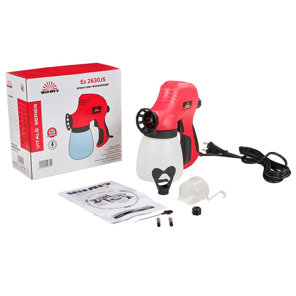 Фарбопульт електричний Vitals Es 2630JS спроектований з дотриманням усіх вимог безпеки та надійні в експлуатації. Розпилювач призначений для нанесення фарби, лаку та інших розчинних матеріалів у відповідній в'язкості на різні поверхні.