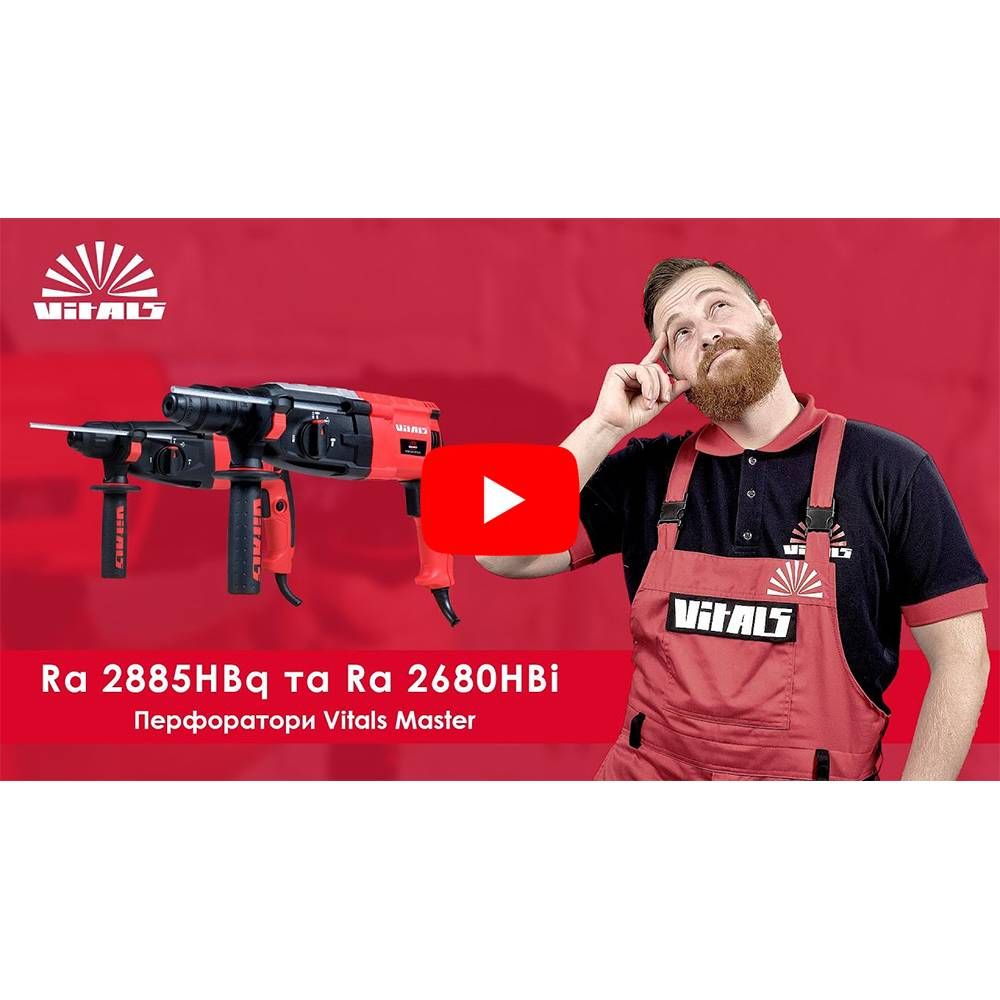 Перфоратор Vitals Master Ra 2885HBq має сучасний дизайн, надійний у роботі, простий у використанні й обслуговуванні, оснащений патроном із хвостовиком стандарту SDS-plus, який дає можливість легко і швидко замінити свердло, піку або долото.