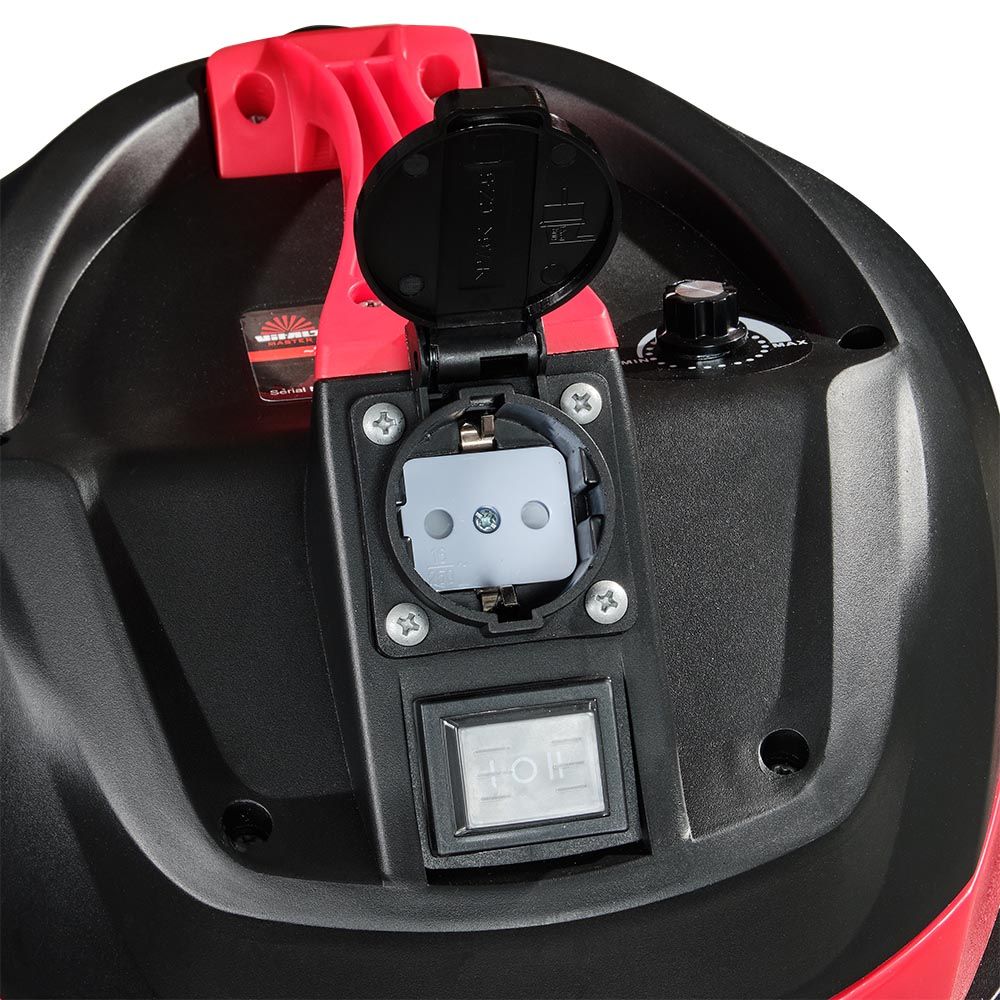 У моделі також передбачена розетка для під’єднання інструменту. Паралельно з увімкненням інструменту вмикається пилосос. Після закінчення роботи інструменту пилосос ще працює деякий час для видалення залишків пилу, і потім вимикається. У комплекті постачання є перехідник для інструменту, що полегшить його під’єднання до пилососа Vitals Master PS 3014SPsw.