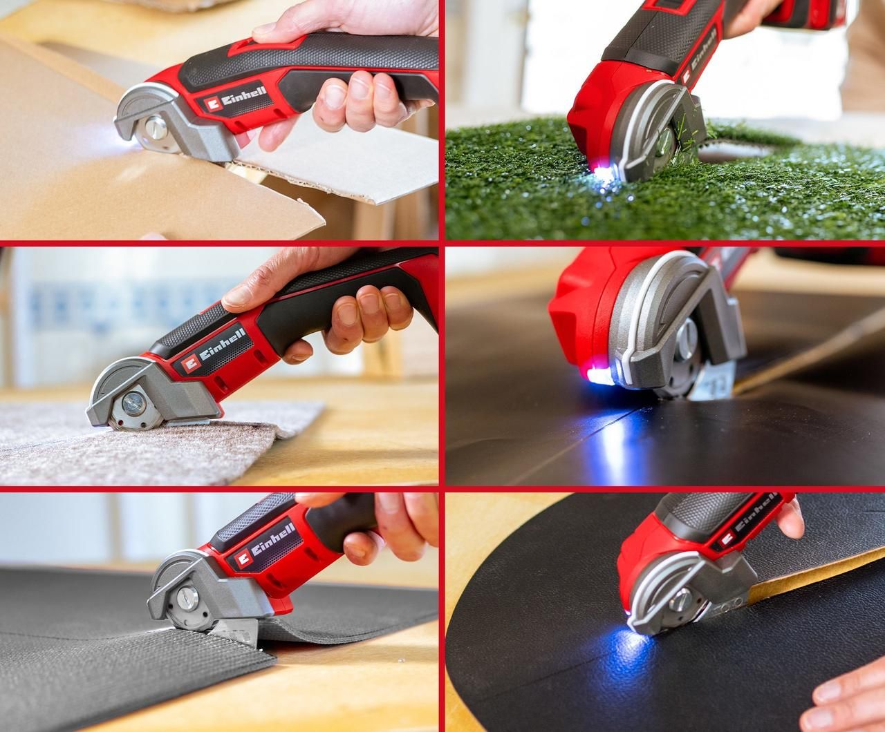 Инструмент серии Power X-Change Для легкой резки картона, текстиля и т.д. толщиной до 6 мм. Переключатель с функцией блокировки для удобной непрерывной работы Легкое обслуживание благодаря обостряющемуся лезвию Светодиодная подсветка зоны реза Практический индикатор линии реза для управления инструментом Удобная эргономичная ручка с мягким покрытием В комплекте предварительно установлено круглое лезвие Поставляется БЕЗ аккумулятора и зарядного устройства Аккумуляторный универсальный режущий инструмент Einhell TE-UC 18/6 Li-Solo – идеальный помощник как для дома, так и для мастерской. Как представитель нашей линейки Power X-Change, универсальный резак можно использовать в сочетании с любым аккумулятором или зарядным устройством из системной серии. Режущий инструмент оснащен предварительно установленным самозатачивающимся лезвием, которое может резать материалы толщиной до 6 мм. Он легко режет многие материалы, такие как различные ткани, резина, картон, искусственный газон, кожа и синтетическая кожа, линолеум, пластик, винил или ковровое покрытие. Встроенный индикатор линии реза и яркая светодиодная подсветка помогают производить точные резы и обеспечивают оптимальный обзор режущей кромки. Переключатель с функцией блокировки и эргономичная ручка с мягким покрытием обеспечивают комфортную работу без устали. Аккумуляторный универсальный режущий инструмент Einhell поставляется без аккумулятора и зарядного устройства.