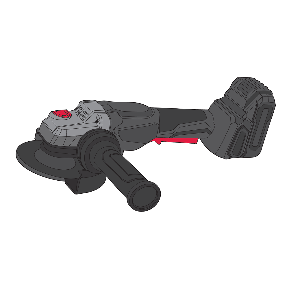 Модель має міцний металевий редуктор, конічний одноступеневий механізм, шпиндель М14 для встановлення абразивних дисків 125 мм та швидкознімний захисний кожух із фіксацією по колу. Зручне допоміжне руків’я та кнопковий фіксатор шпинделя полегшують заміну дисків і підвищують комфорт роботи.