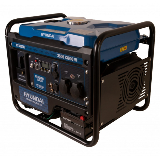 Генератор інверторний Hyundai HY4000EI — бензиновий інверторний генератор потужністю до 3,9 кВт, який ідеально підходить для побутового, кемпінгового використання або як резервне джерело живлення для електроніки, інструментів та невеликих побутових приладів.