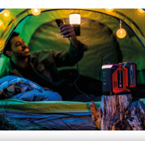 Акумуляторна зарядна станція Einhell TC-ES 18/150/1 Li-Solo перетворює енергію з акумулятора PXC та забезпечує живленням численні пристрої в дорозі: через розетку 230 В доступна потужність до 150 Вт, менші пристрої можна заряджати через роз'єм USB-A або USB-C PD.