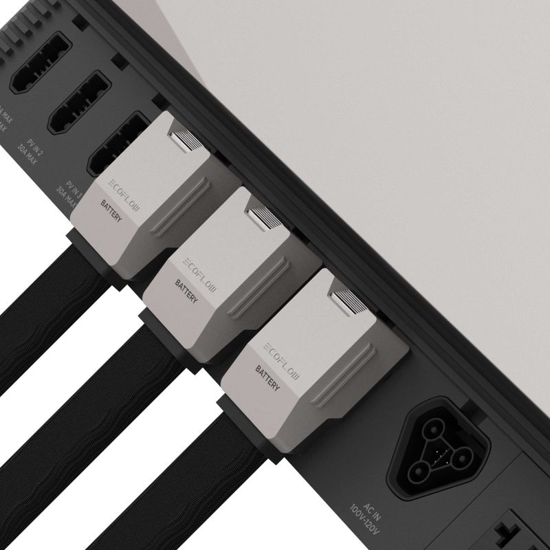 Кабель забезпечує безперешкодний зв'язок між усіма компонентами комплекту живлення. У поєднанні з LFP-батареями EcoFlow, які доступні в розмірах 2 кВт·год і 5 кВт·год, ємність накопичувача можна гнучко розширити до 15 кВт·год. Вбудована система керування батареєю (BMS) надійно захищає батареї від перевантаження та забезпечує безпечне використання – навіть при температурах до -20 °C.