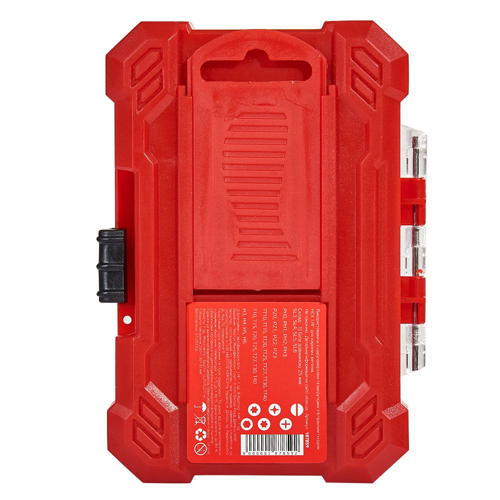 Усі насадки розміщені у зручному кейсі із замком. Біти та тримач мають свої окремі осередки, завдяки чому не випадають та не губляться під час транспортування.