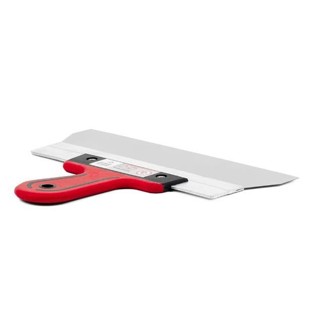 Рукоять из пластика и направляющая из алюминия делают шпатель достаточно легким и удобным в использовании. Ручка имеет специальную эргономичную форму, что обеспечивает максимально комфортную работу. Резиновое покрытие против скольжения в руках.