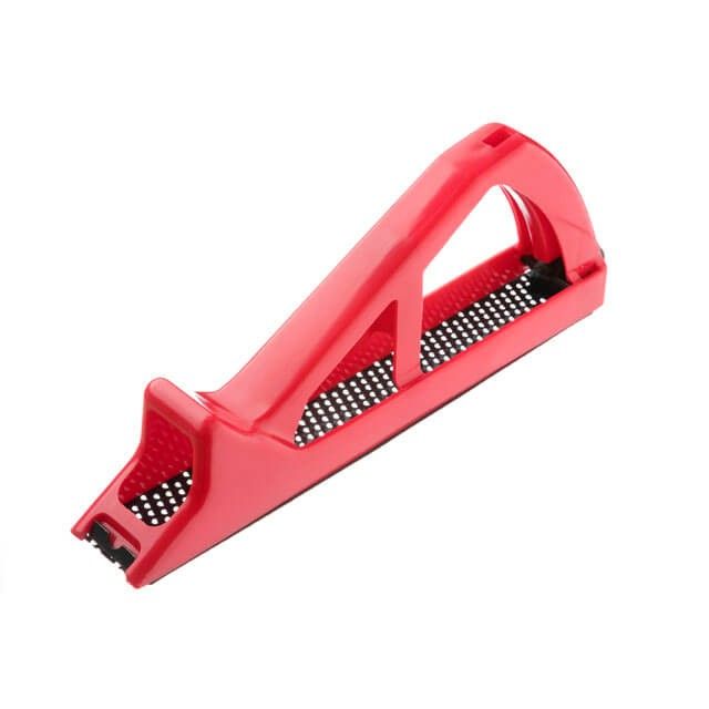 Рабочее полотно изготовлено из высококачественной стали с острыми кромками, обладает большим сроком службы и легко срезает большие пласты материала. Пластиковый держатель и стальная часть плотно крепятся друг к другу. Отсутствие люфта делает вашу работу безопасной и точной.