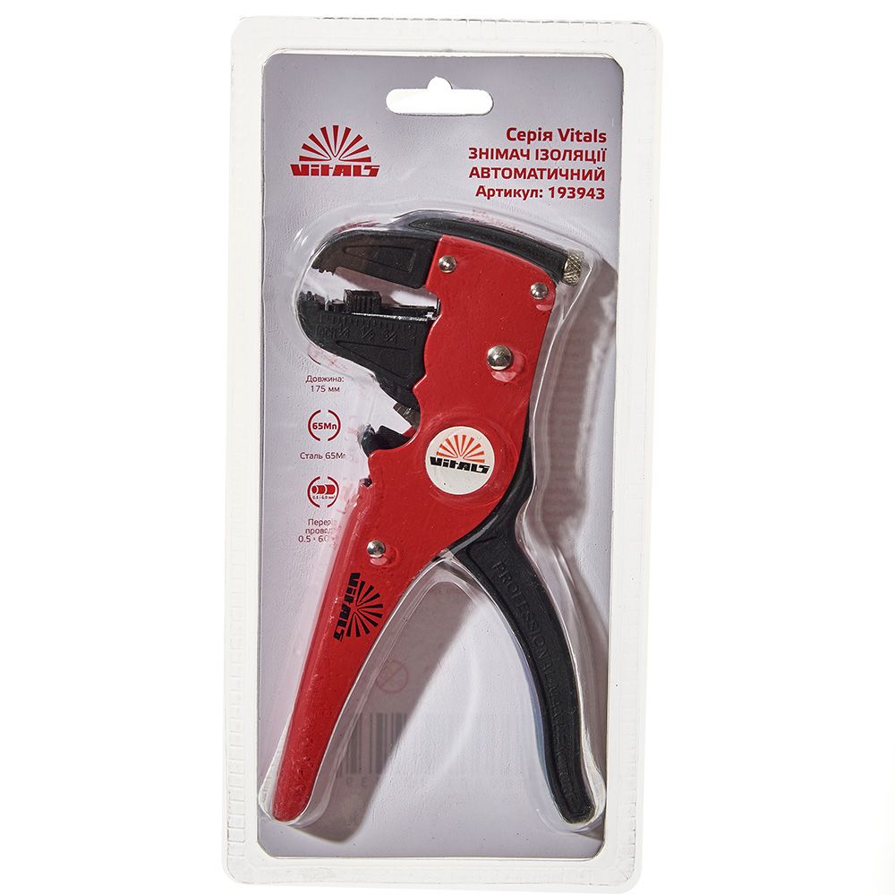 Знімач ізоляції автоматичний 0,5-6 мм Vitals – це інструмент для зняття ізоляції з дротів та кабелів різних перерізів та типів. Він має такі характеристики.