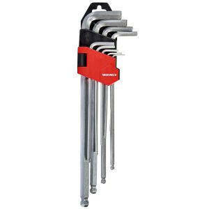 Набір ключів шестигранних з кулею подовжених 9 шт. 1,5-10 мм Vitals Master виготовлений із високоміцної сталі марки CrV, яка значно збільшує запас міцності та робочий ресурс. Покриття у ключів — хромоване.
