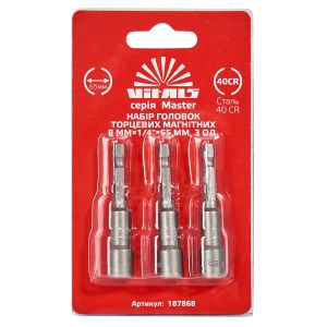 Набір головок торцевих магнітних 8 мм 1/4″×65 мм 3 шт. Vitals