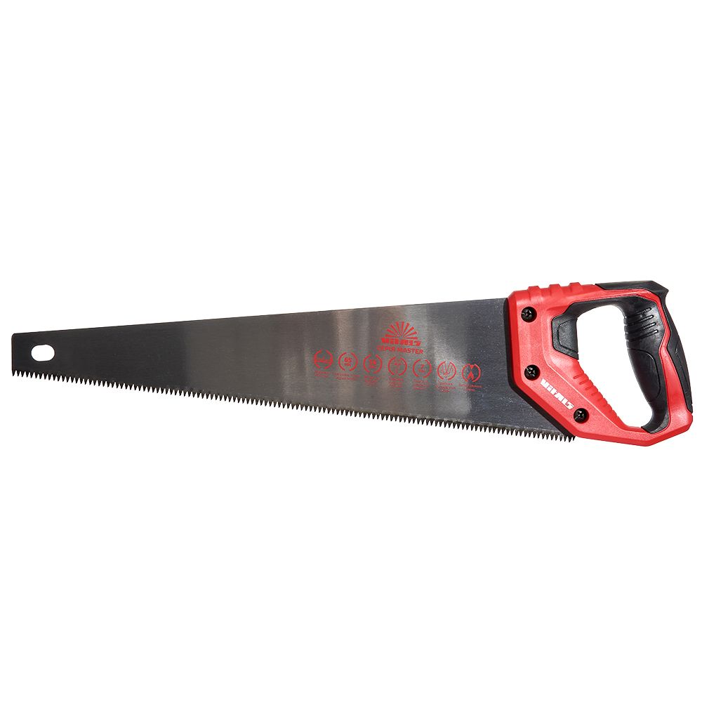 Ножівка по дереву 450 мм 7 з/д сталь Mn65 Vitals Master призначена для поздовжнього та поперекового розпилу заготывель середніх та маленьких розмірів з деревини м'яких та твердих порід, розпилу ДСП, фанери та ПВХ.