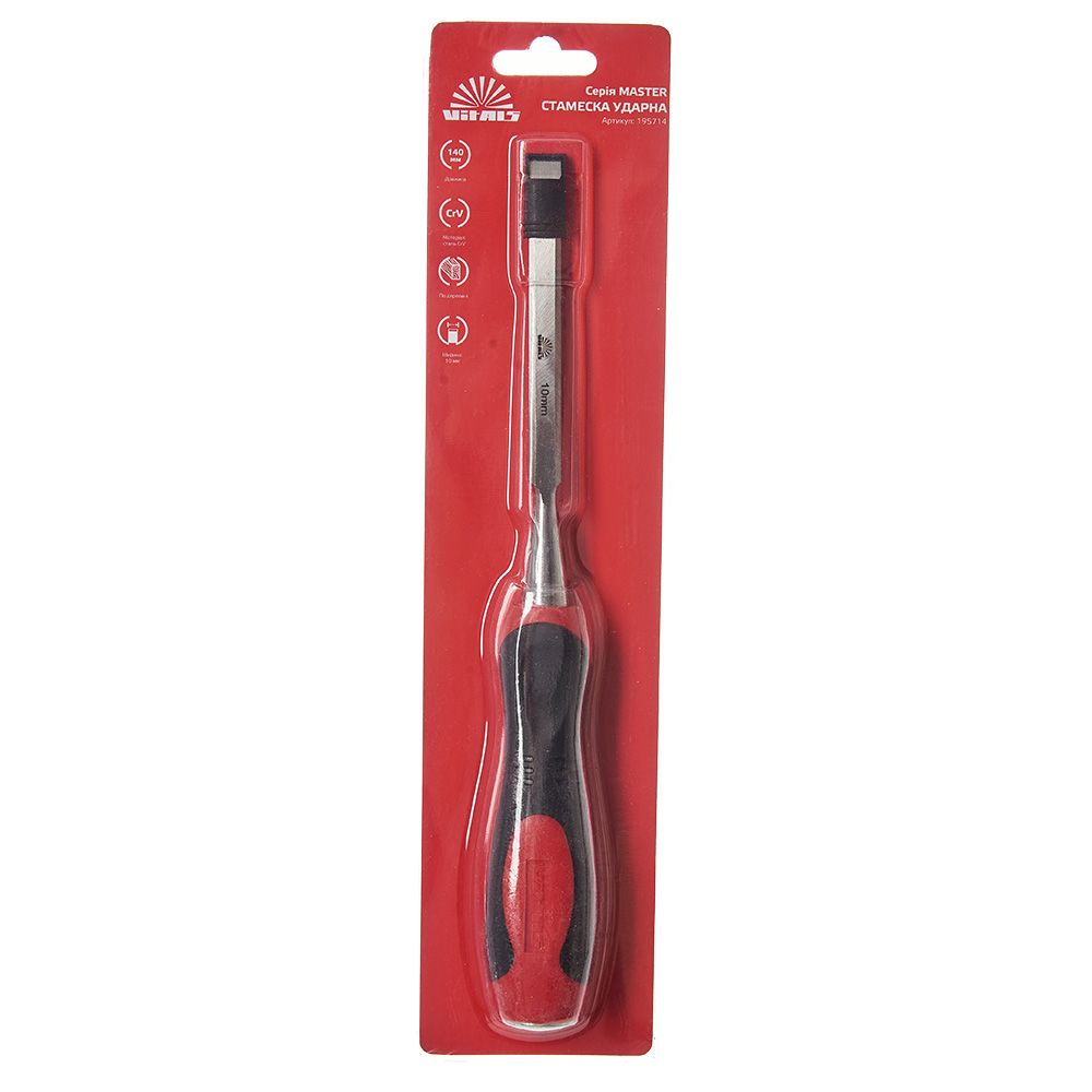 Стамеска 10×140 мм Vitals Master - це інструмент для різання та вирізування дерев'яних деталей різної форми та складності. Використовується для вибірки пазів, отворів, фігурного різання у деревині твердих та м'яких порід з використанням молотка чи киянки. Виготовлена з високоякісної сталі CrV, яка забезпечує довговічність та міцність стамески. Металевий наконечник на торці руків'я дозволяє завдавати ударів молотком або киянкою і докладати більше сили для інтенсивнішої вибірки матеріалу. Ширина стамески становить 10 мм, а довжина – 140 мм. Подовжене ергономічне руків'я з м'якими гумовими вставками для кращого хвату в руці та надійного контролю інструменту в процесі роботи.
