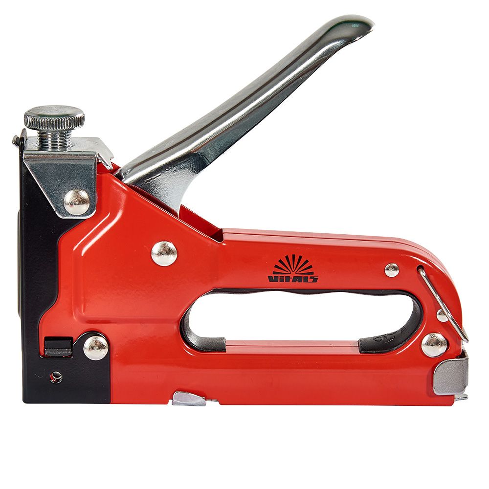 Степлер будівельний T53 4–14 мм Vitals — незамінний інструмент для тих, хто займається будівництвом, ремонтними роботами, виробництвом меблів.