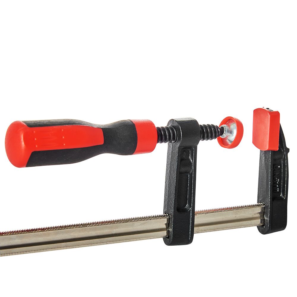 Струбцини відрізняються великою силою стиснення. На затискних губках присутні пластикові накладки, які захищають виріб від подряпин та пошкоджень.
