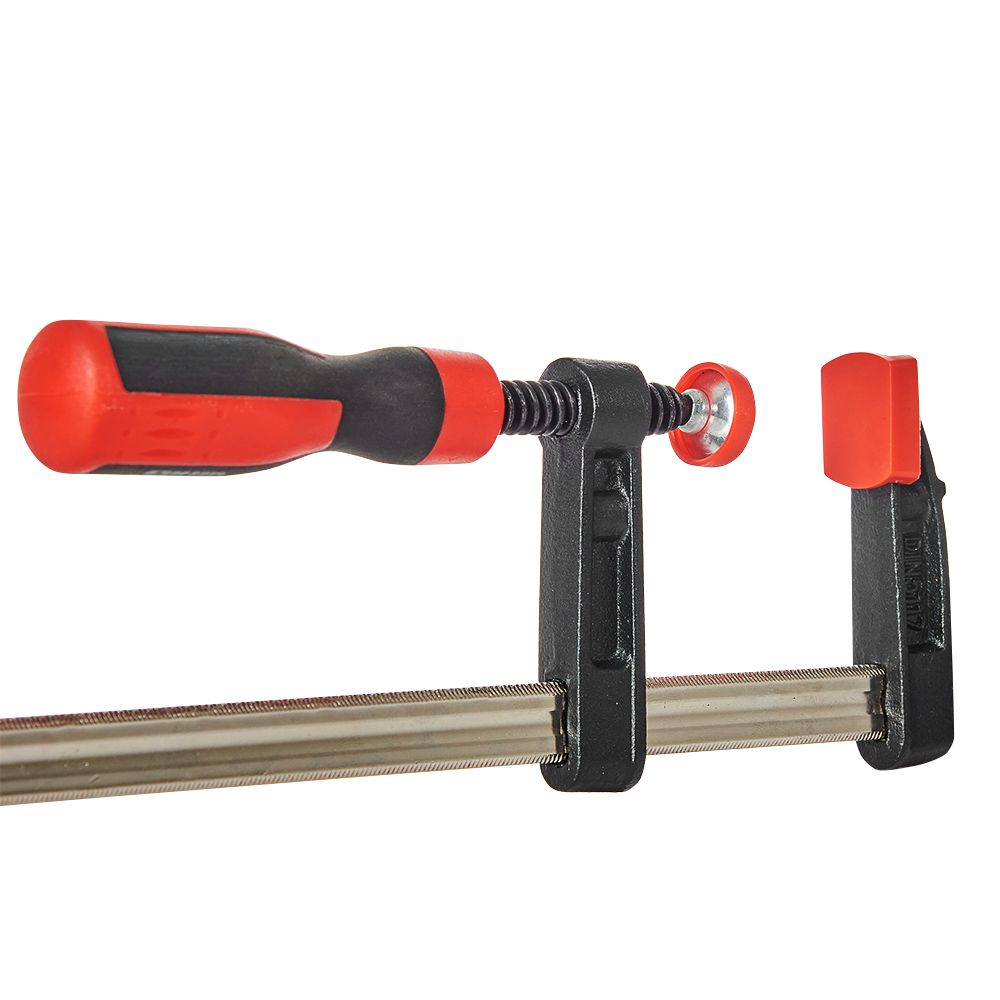 Струбцини відрізняються великою силою стиснення. На затискних губках присутні пластикові накладки, які захищають виріб від подряпин та пошкоджень.