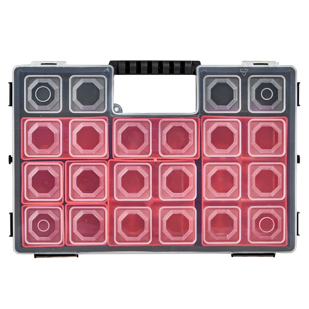 Він стане незамінним для зберігання наборів інструментів та дрібних деталей домашнього майстра, творчої рукодільниці, затятого рибалки та мисливця, адже грамотний поділ на секції дозволяє системно організувати зберігання дрібних деталей.