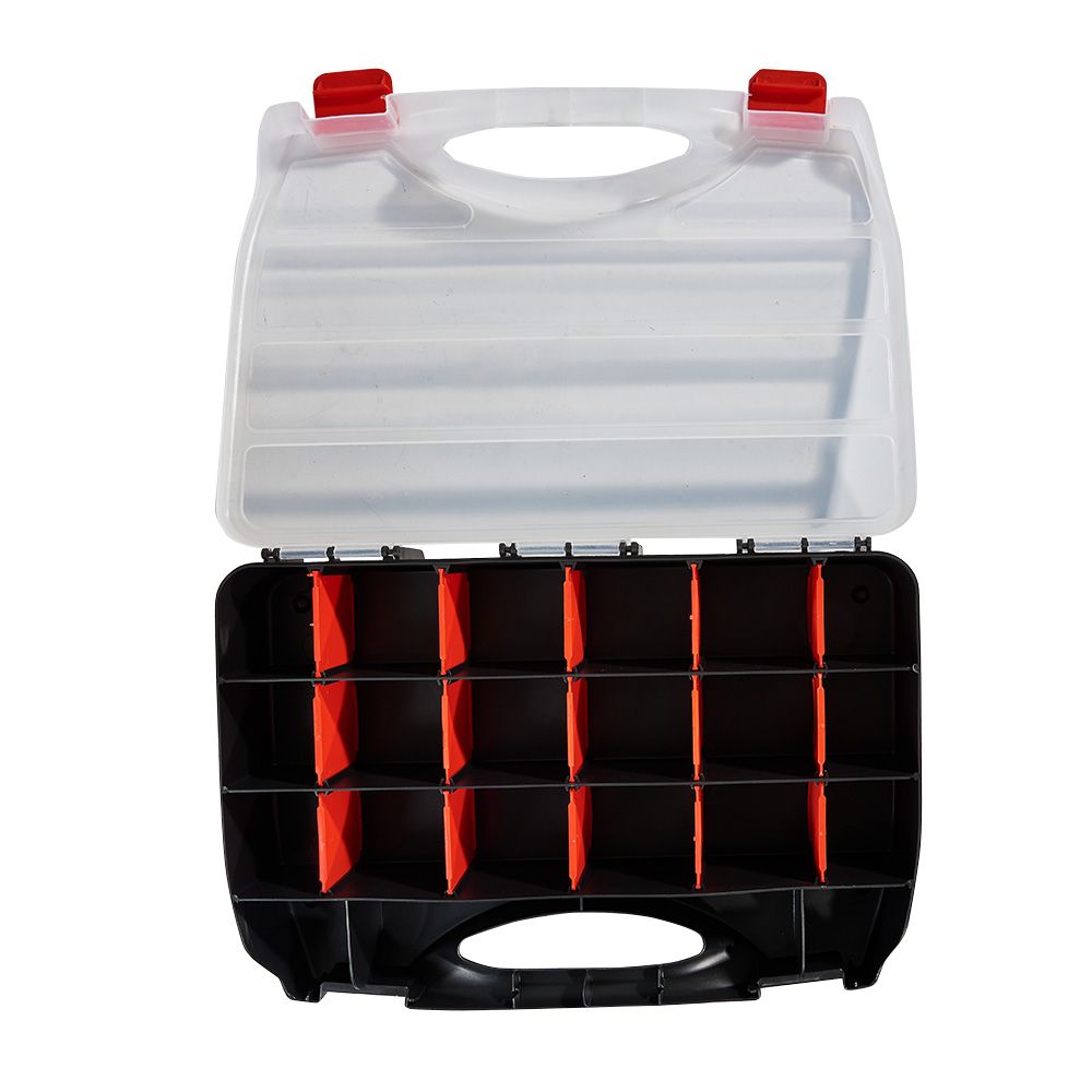 Він стане незамінним для зберігання наборів інструментів та дрібних деталей домашнього майстра, творчої рукодільниці, затятого рибалки та мисливця, адже грамотний поділ на секції дозволяє системно організувати зберігання дрібних деталей.