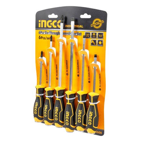 Набір ударних викруток 6 шт INGCO INDUSTRIAL містить в комплекті три викрутки з прямим шліцом і три викрутки з хрестовим.