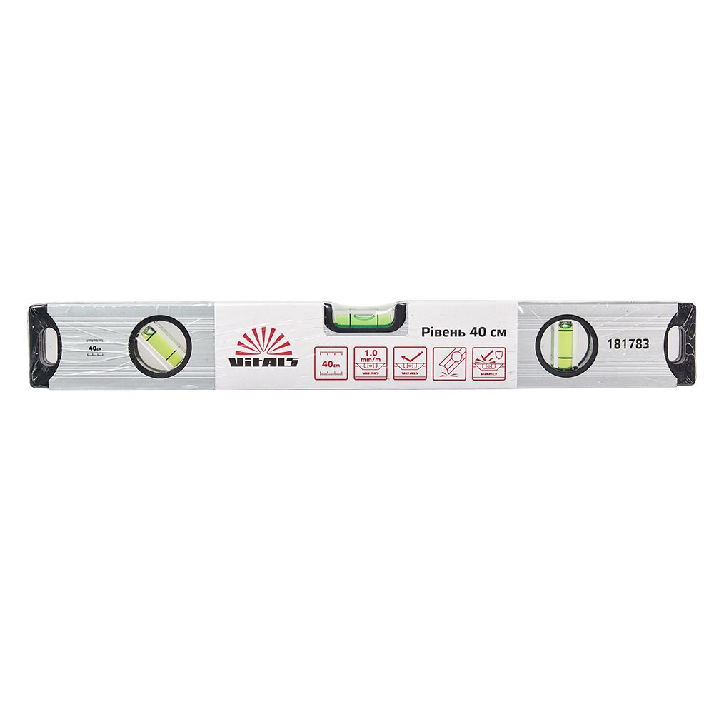 Будівельний рівень 40 см 3 капсули алюмінієва рамка Vitals — це інструмент для виявлення відхилень поверхні по горизонталі та вертикалі. Забезпечує високу точність та достатній ступінь комфорту під час виконання вимірювальних робіт.
