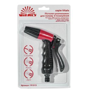 Пістолет-розпилювач трипозиційний Vitals призначений для поливу рослин при підключенні до водопровідного шлангу за допомогою конектора ½".