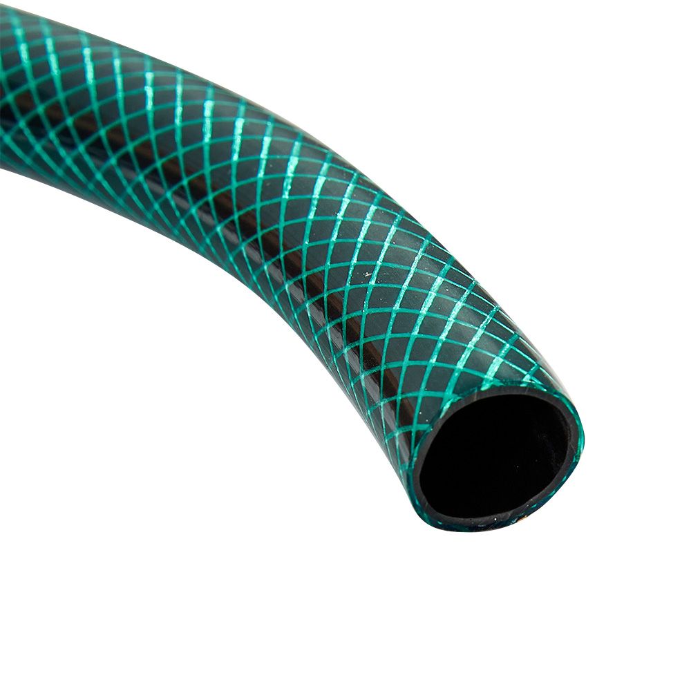 Шланг садовий для поливу Vitals "Classic" - це надійний та зручний шланг для поливу саду, городу, газону або квітників. Шланг має діаметр ½" і довжину 30 м, що дозволяє охопити велику площу поливу. Шланг виготовлений із полівінілхлориду (ПВХ), який має високу міцність, еластичність і стійкість до впливу води, ультрафіолетового випромінювання та наростання водоростей. Шланг має три шари: внутрішній, середній та зовнішній. Внутрішній шар - це гладка трубка з ПВХ, яка забезпечує вільний поток води. Середній шар - це армування з хрестоподібних ниток, яке надає шлангу міцності та стійкості до тиску. Зовнішній шар - це захисна оболонка із ПВХ, яка захищає шланг від механічних пошкоджень та впливу навколишнього середовища. Шланг має робочий тиск 6 бар та тиск на розрив 12 бар, що гарантує безпеку та довговічність роботи. Шланг має робочу температуру від – 5 °С до + 45 °С, що дозволяє використовувати його в різних кліматичних умовах.