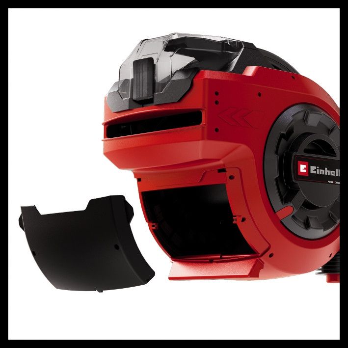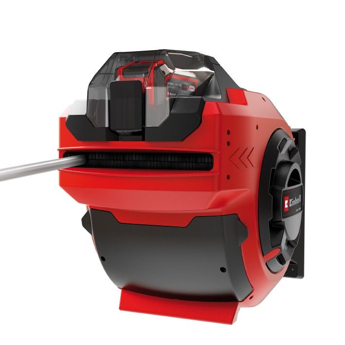 Потужний 18-вольтовий акумулятор Power X-Change дозволяє акумуляторній котушці для шланга Einhell GE-HR 18/30 Li-Solo автоматично згортати 30-метровий садовий шланг діаметром 12,5 мм (1/2"). Напрямні шланга та очисні щітки забезпечують чистоту шланга під час згортання, а стопорна кулька автоматично зупиняє двигун для запобігання пошкодженням. Котушка стійка до УФ-випромінювання та бризкозахищена, може використовуватися як портативний пристрій або встановлюватися на стіну. Настінний кронштейн та адаптери для кранів роблять монтаж та підключення простими. Інструмент поставляється без акумулятора і зарядного пристрою, але він може бути приведений в дію за допомогою широкого асортименту Power X-Change акумуляторів.