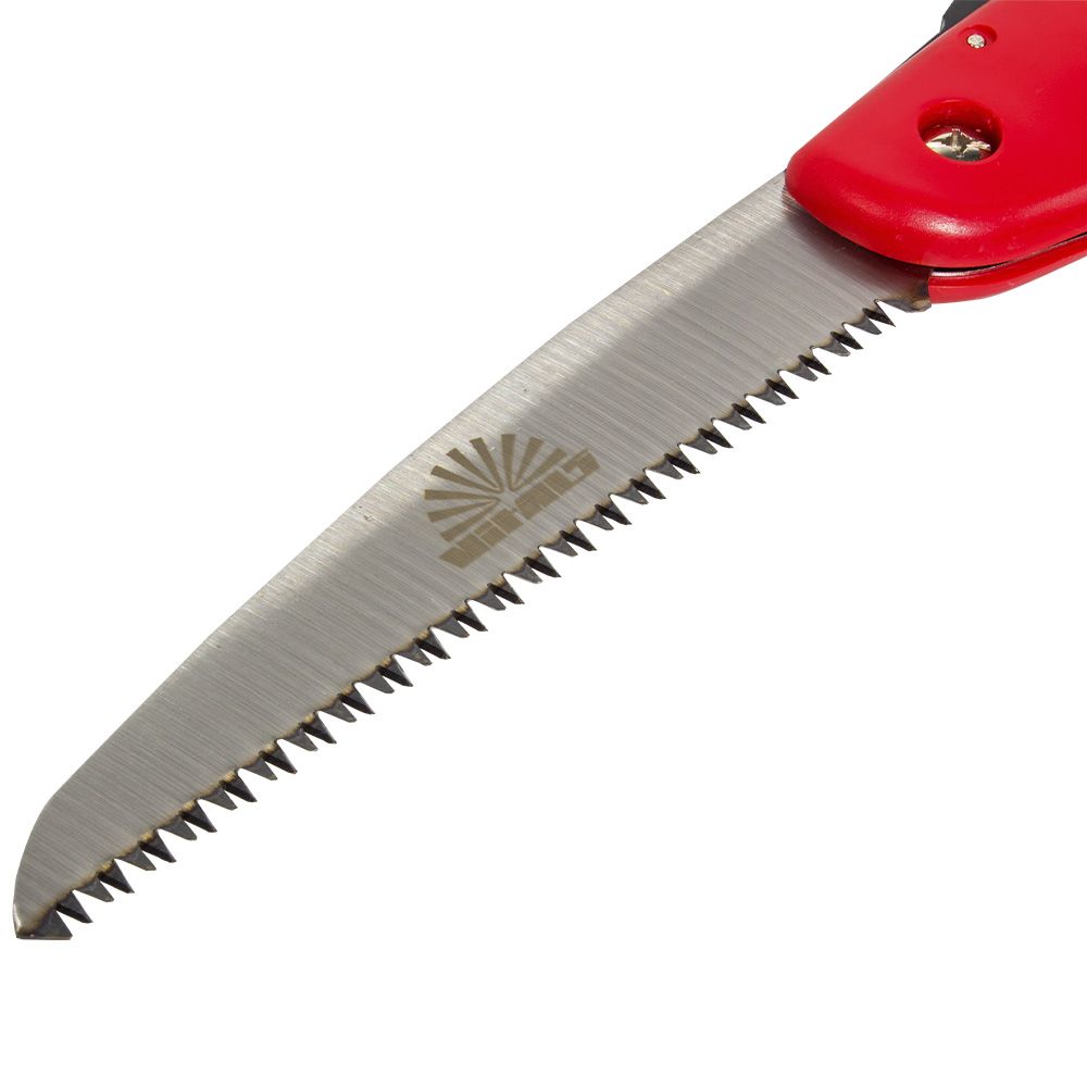 Великий гострий зуб (7 шт на дюйм) із тристороннім заточенням ефективно ріже навіть товсті гілки. Завдяки заточенню з трьох сторін інструмент може пиляти відразу при прямому та зворотному ході. Це вдвічі прискорює різання, дозволяє не втомлюючись обробити крони кількох дерев.
