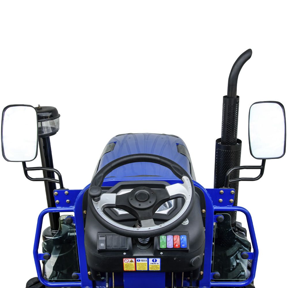 Трактор не має кабіни, але сидіння на амортизаторі з регулюванням за відстанню до керма і підлокітниками забезпечує комфорт водію. Панель приладів багатофункціональна, з цифровим покажчиком тиску. Рівна підлога додає зручності. Є електророзетка для причепа, базове освітлення, дзеркала заднього виду, звуковий сигнал і аварійна сигналізація.