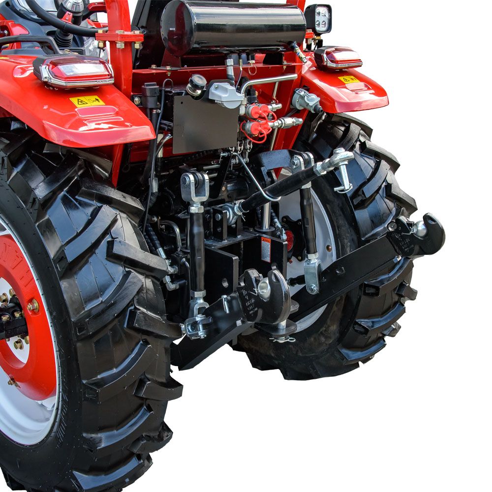 Задня 3-точкова навісна система приводиться в дію двома гідроциліндрами. Вал відбору потужності працює на двох режимах — 540 та 1000 об/хв. Є чотири гідровиходи (2 напір/злив, 2 злив) зі швидкорозкривними муфтами для під’єднання навісного обладнання. Знімна маятникова цапфа забезпечує просте буксирування.