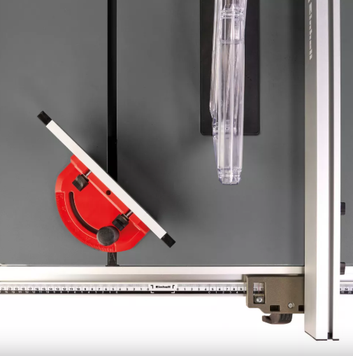 Робоча поверхня пили Einhell TC-TS 254 eco виготовлена з високоякісного листового металу з порошковим покриттям, що забезпечує низький коефіцієнт тертя та легке ковзання заготовки. Розмір столу 580 на 555 міліметрів є оптимальним для роботи з плитами середнього формату, забезпечуючи надійну опору та запобігаючи перекосам. Паралельний упор оснащений ексцентриковим затискачем, який надійно фіксує його з обох сторін робочого столу, що виключає відхилення диска від заданої лінії різу. Додатковий кутовий упор для поперечних різів дозволяє точно торцювати деталі під кутом +/- 60 градусів, що робить інструмент максимально універсальним. Стійка металева рама з гумовими накладками на ніжках ефективно поглинає вібрації, забезпечуючи стаціонарність агрегату навіть на нерівних поверхнях майстерні.